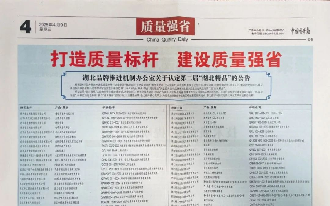 “湖北精品”由湖北省市場監管局、省經信廳等多部門聯合推動,是全省制造業領域的“優中選優”工程,代表湖北產業技術最高水平和質量最強口碑。評選需通過材料初審、現場核查、專家評審、社會公示、動態監管五大環節,對標國際先進標準,聚焦“技術領先、質量卓越、品牌高端、效益突出”四大維度,堪稱湖北制造的“金字招牌”