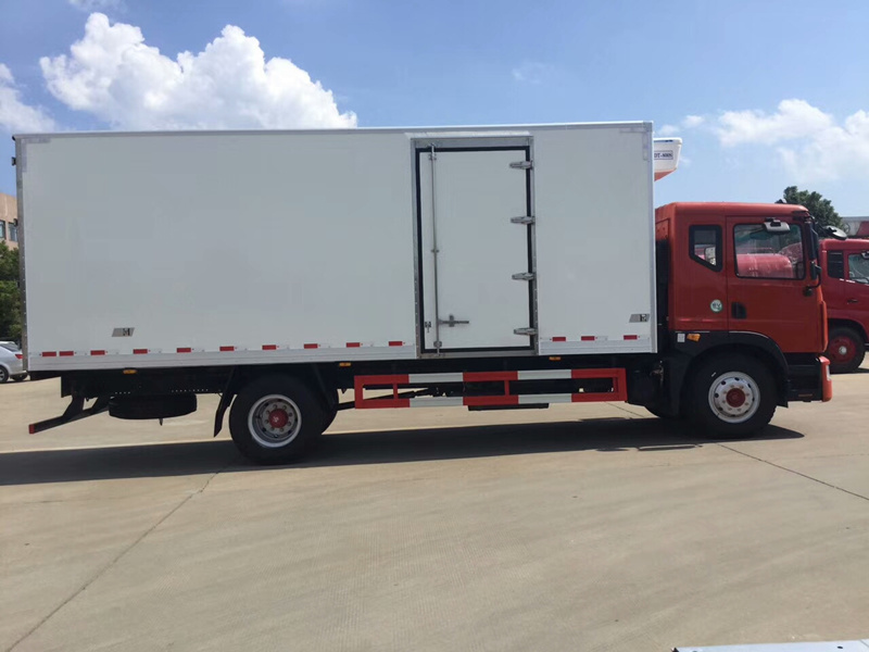 采用我公司液壓吸附一體成型生產線制造,保溫性能達到國家A級標準, 廂體內外面料采用最新款納米玻璃鋼(不吸光、隔熱性好、硬度強、抗氧化),廂體厚度為8cm,廂體尺寸:6800x2310x2500mm,內襯骨架為防銹處理武鋼優質輕鋼型材,保溫材料為無空隙填充聚氨酯發泡,廂體底部為鋁合金花紋板或選平面納米玻璃鋼,廂體采用鍍鋅不銹鋼包角,加厚型鋁合金包邊,后門框為不銹鋼,加厚型不銹鋼后門合頁及鎖件,廂體內部采用LED照明燈及廂體示寬燈。